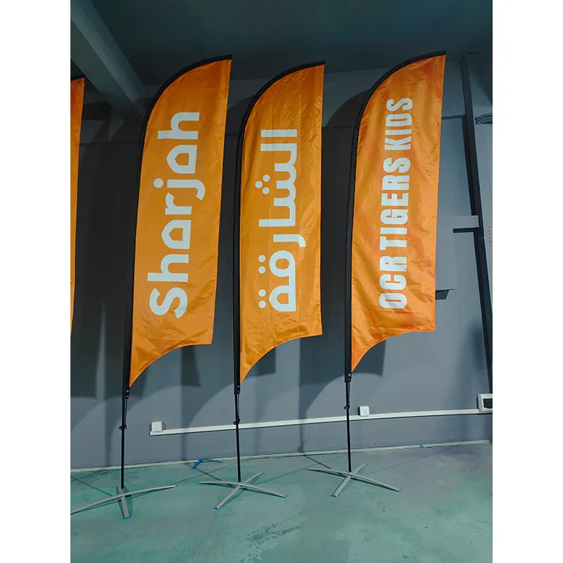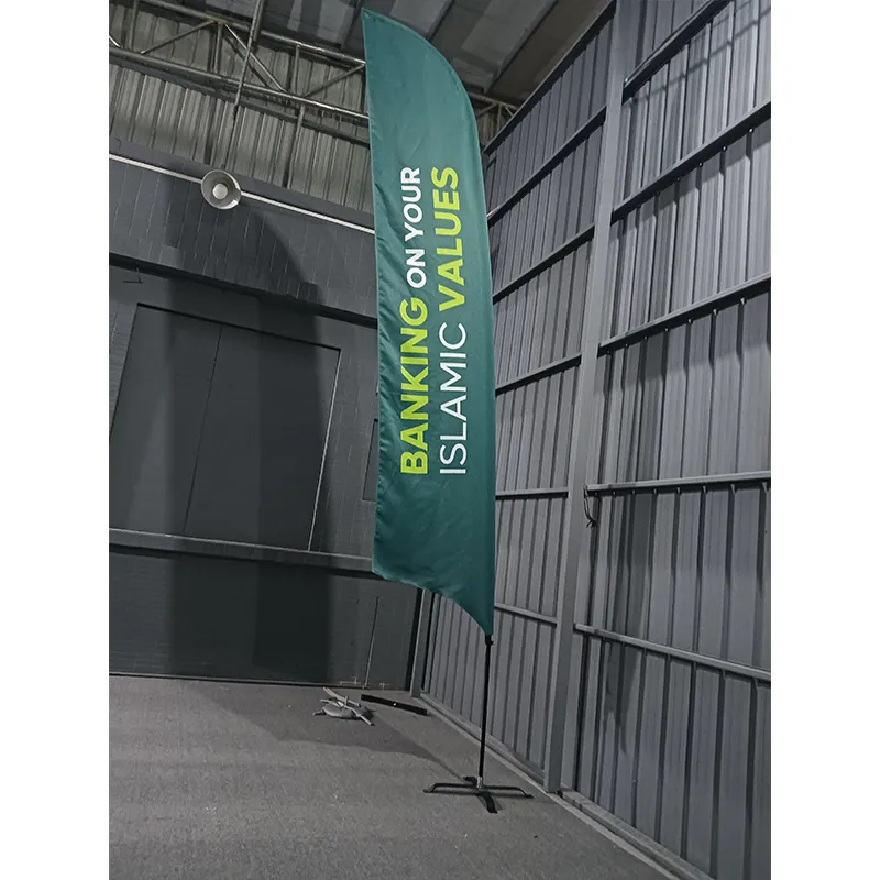 ທຸງຫາດຊາຍ feather, ຊຶ່ງເອີ້ນກັນວ່າທຸງຫາດຊາຍ plug-in, ເປັນເຄື່ອງມືສົ່ງເສີມການຂາຍທີ່ໃຊ້ຢ່າງກວ້າງຂວາງໃນກິດຈະກໍາກາງແຈ້ງ. ທຸງມີດໂຄສະນາທີ່ຜະລິດໂດຍ Earth Display ຮັບຮອງເອົາການອອກແບບເສົາທຸງເສັ້ນໄຍກາກບອນ plug-in, ເຊິ່ງສະດວກໃນການຕິດຕັ້ງໄວ ແລະຖອດອອກໄດ້. ພວກມັນມີນ້ຳໜັກເບົາ, ທົນທານຕໍ່ລົມ, ແລະມີທາງເລືອກໃນການປັບແຕ່ງສູງ. ພວກມັນຖືກນໍາໃຊ້ຢ່າງກວ້າງຂວາງໃນການແລ່ນມາລາທອນ, ງານວາງສະແດງລົດໃຫຍ່, ພິທີເປີດ, ແລະກິດຈະກໍາອື່ນໆ.