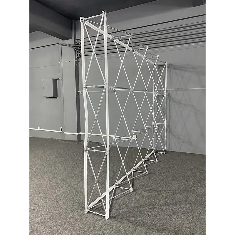 - ກອບຝາ Pop up ເຮັດດ້ວຍວັດສະດຸໂລຫະປະສົມອາລູມິນຽມທີ່ທົນທານ, ແລະມັນຍັງມີນ້ໍາຫນັກເບົາແລະຫນາແຫນ້ນ, ຊ່ວຍໃຫ້ງ່າຍຕໍ່ການພົກພາແລະການເກັບຮັກສາ.
